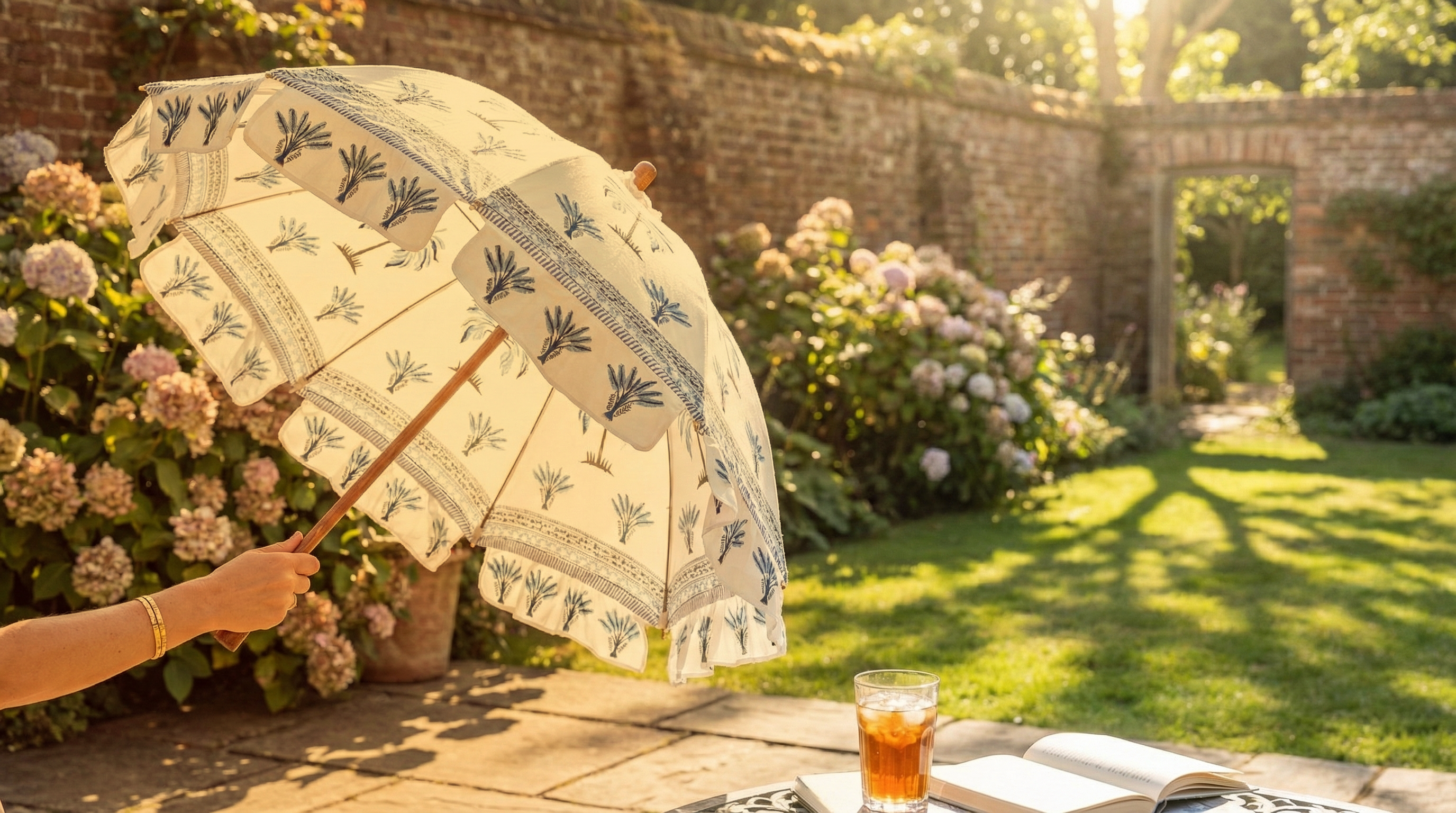Handcrafted Indian Block Printed Cotton Umbrella Parasol - Outdoor Garden and Patio Umbrella
