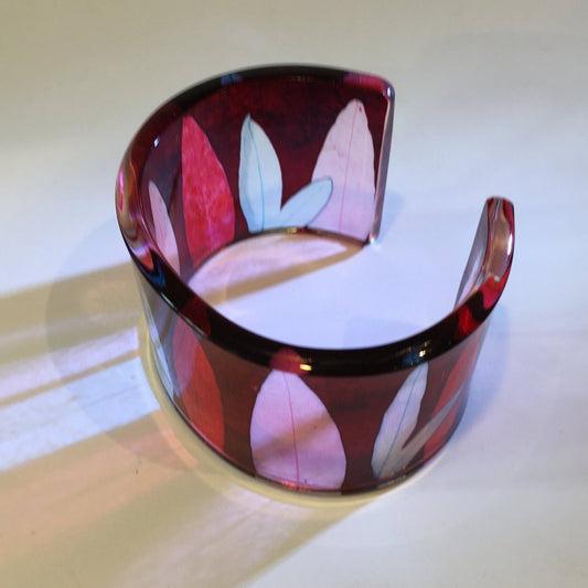 Unique Handcrafted Wide Red and Pink Leaf Cuff | Recycled Acrylic Jewellery