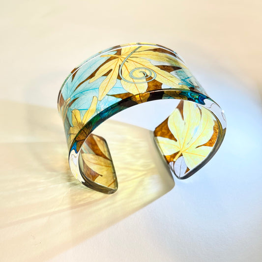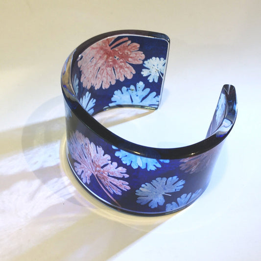Ghibli Flower Cuff Bracelet - Real Plant Imprints, Handmade Recycled Acrylic