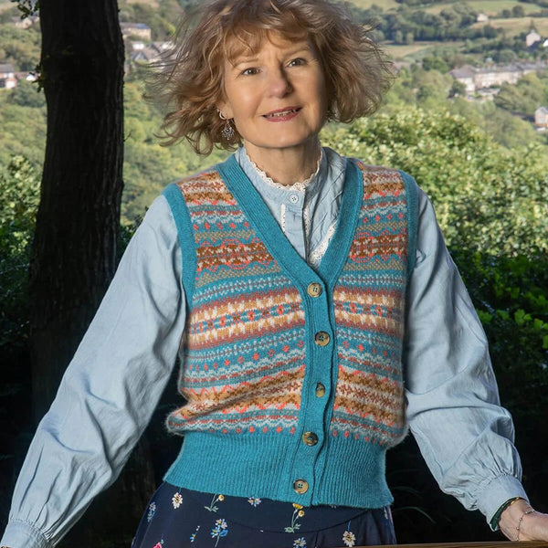 ERIBÉ Women’s Kinross Fair Isle Waistcoat – Opal