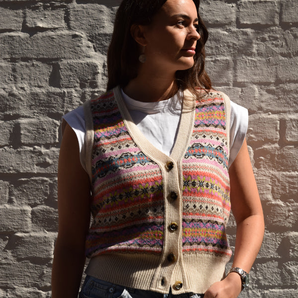 The Men's Eddie Brambling Fairisle Sweater by ERIBÉ is expertly crafted in Scotland from 100% Shetland softened wool, providing warmth, comfort, and durability. Featuring a traditional Fairisle pattern, this sweater combines classic style with premium quality, making it a versatile addition to your wardrobe. For perfect sizing, refer to our Size Chart Page. Care instructions: Hand wash or dry clean only to maintain the integrity of the wool.
