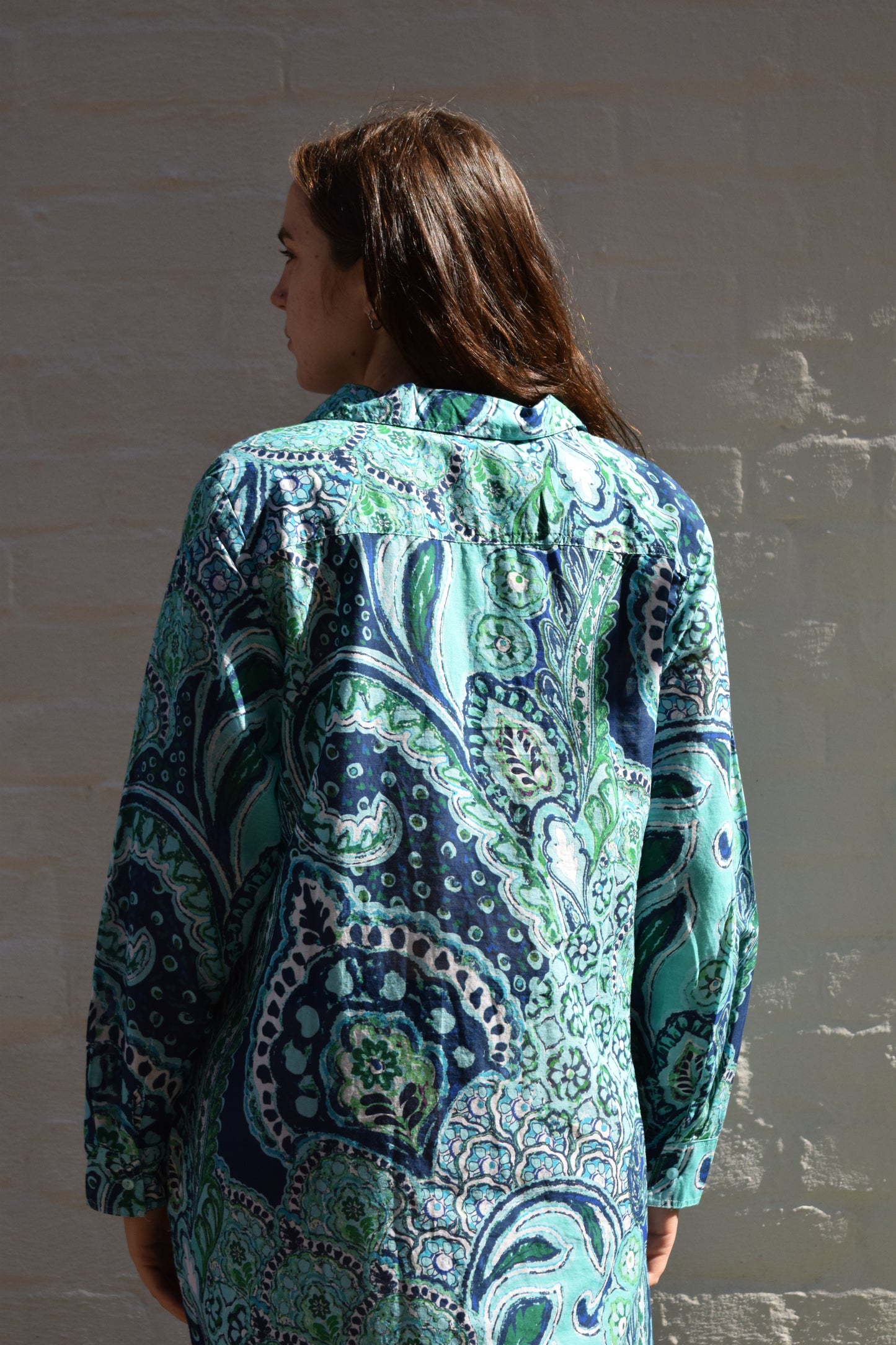 Say hello to effortless elegance with the Brazil Blue Dress by One Season. Crafted from 100% soft viscose, this breezy midi offers a slightly loose, straight-cut silhouette that flatters without clinging. Its mesmerising blue and green paisley-inspired print brings a vibrant, sun-kissed energy to your wardrobe—perfect for beach holidays, city strolls or alfresco lunches.