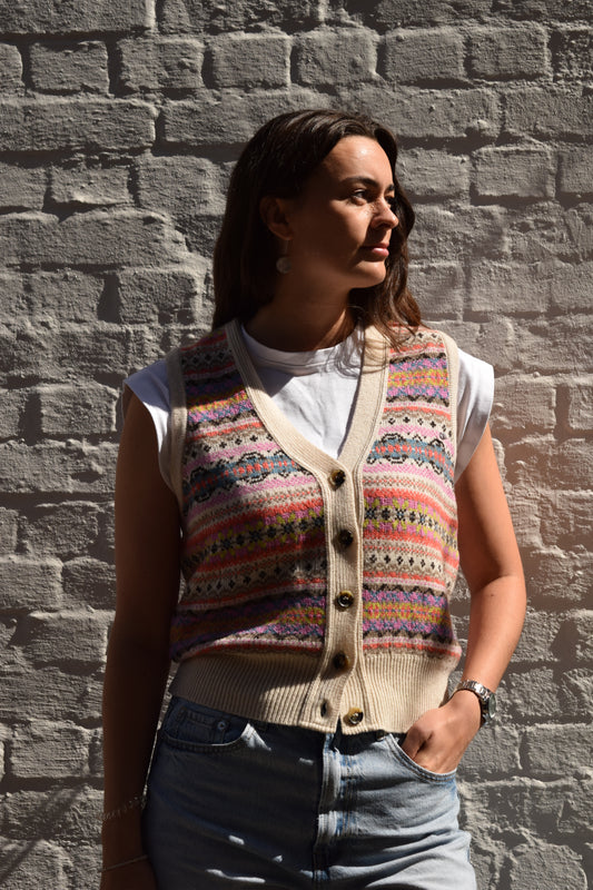 ERIBÉ Women’s Kinross Fair Isle Waistcoat – Coral