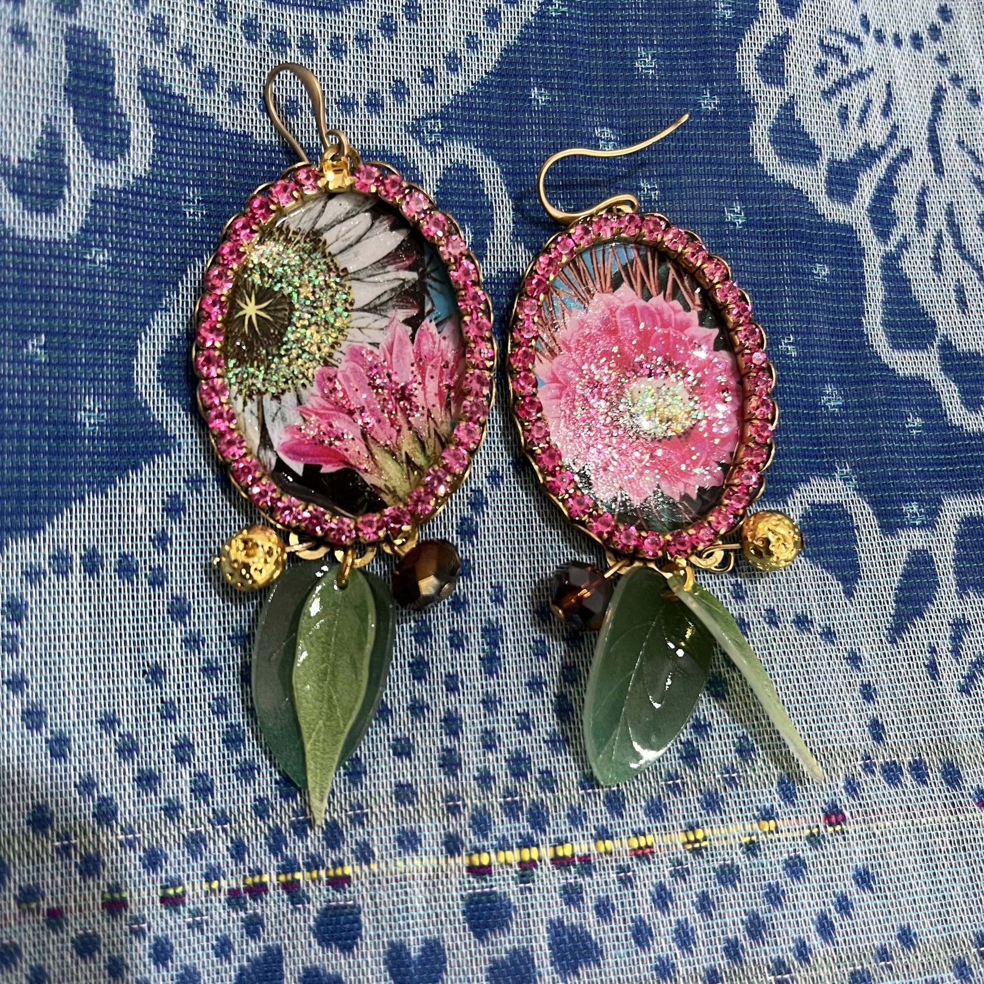 100% Unique Pink Blossom Leaf Earrings | Handcrafted Jewellery by Diana Wilson