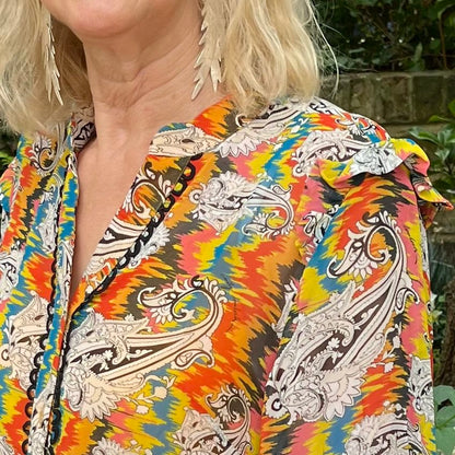 Ashley Multicolour Top | 70s Inspired Luxury Print Blouse