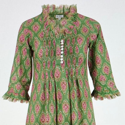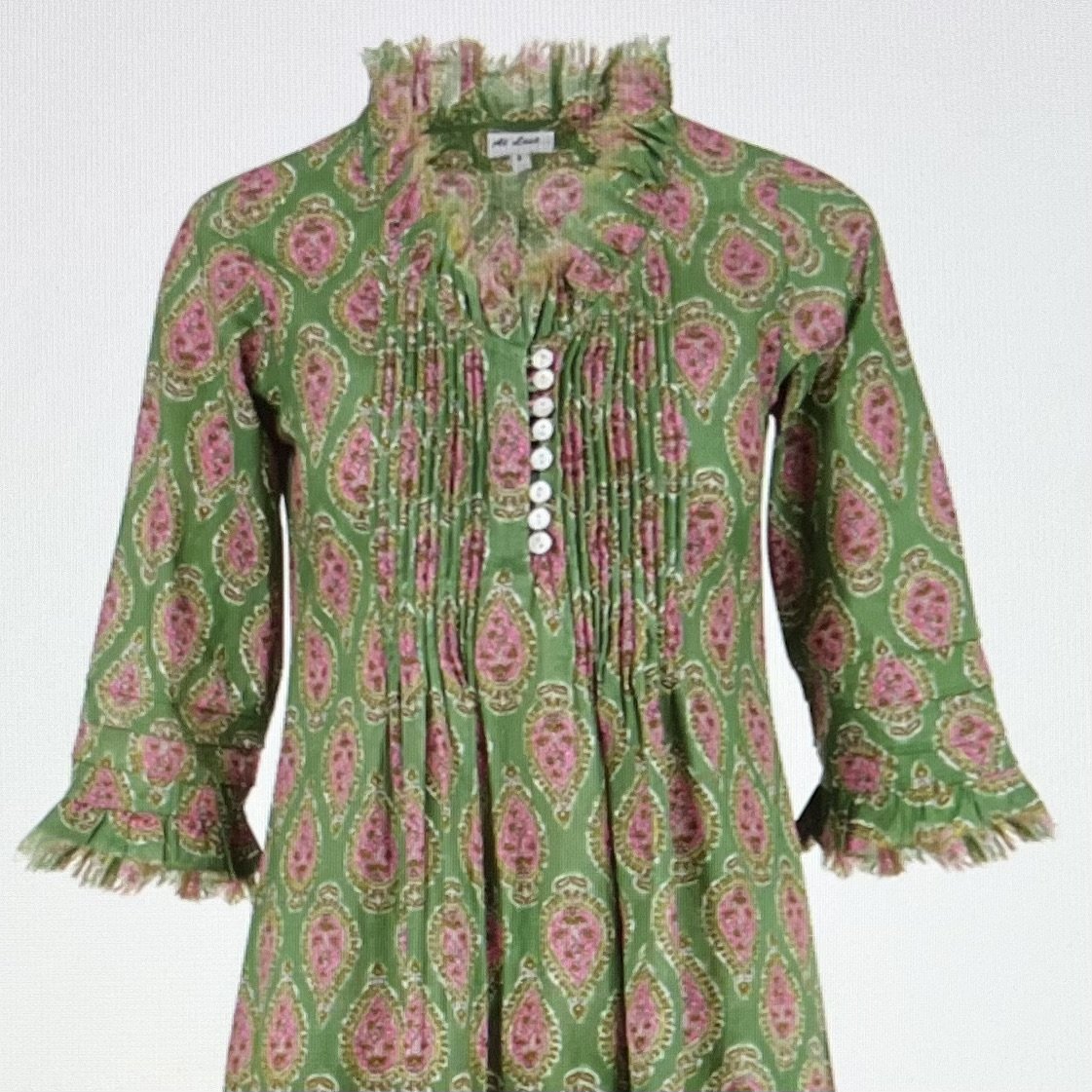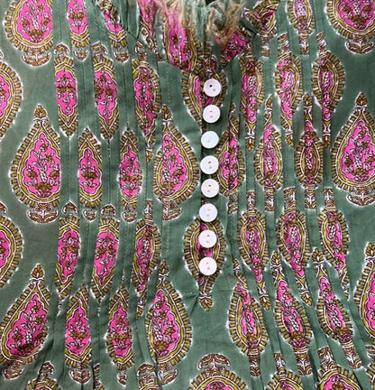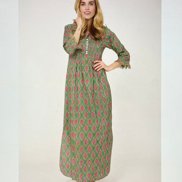 At Last: Green & Pink Teardrop Cotton Annabel Maxi Dress