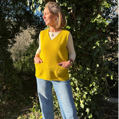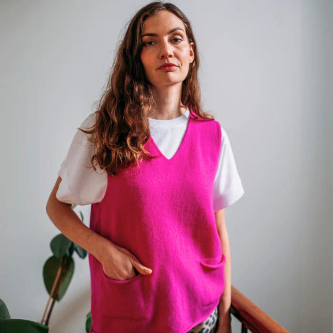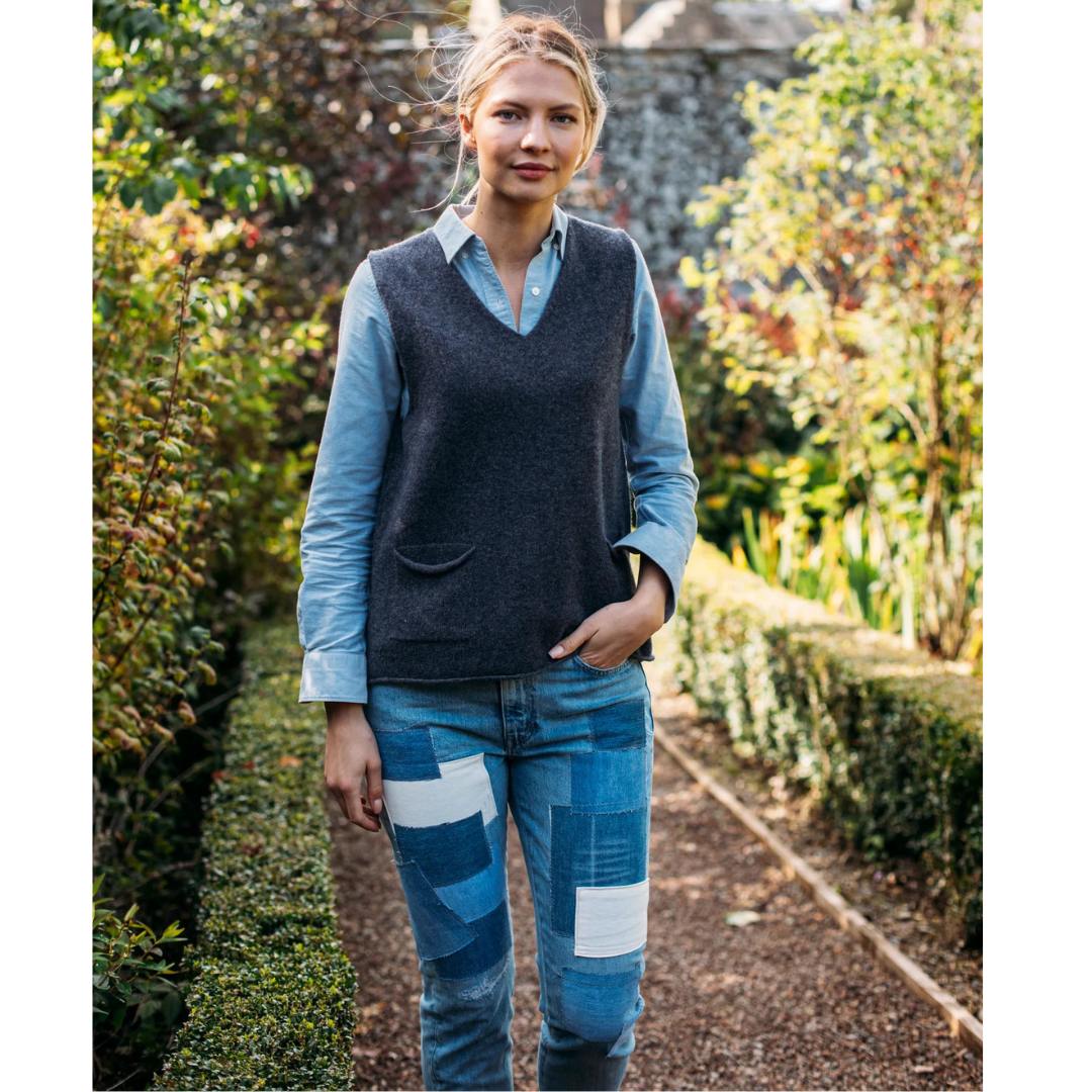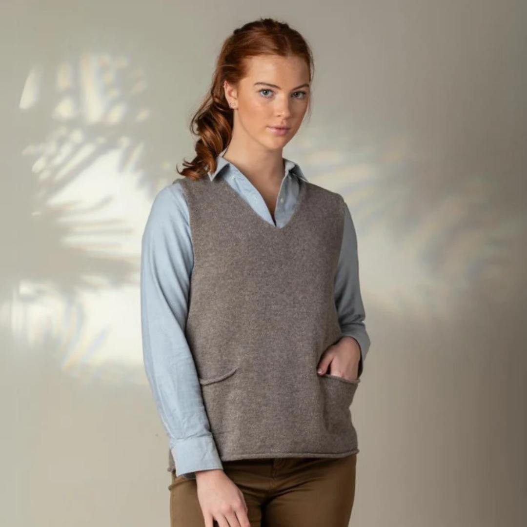 The Corry V-Neck Vest exemplifies sustainable luxury fleece, elevating both comfort and warmth. Crafted in Scotland from the softest 100% Merino wool, this women’s knitwear vest features a relaxed fit, V-neck design, and practical front pockets—perfect for layering during cooler weather.