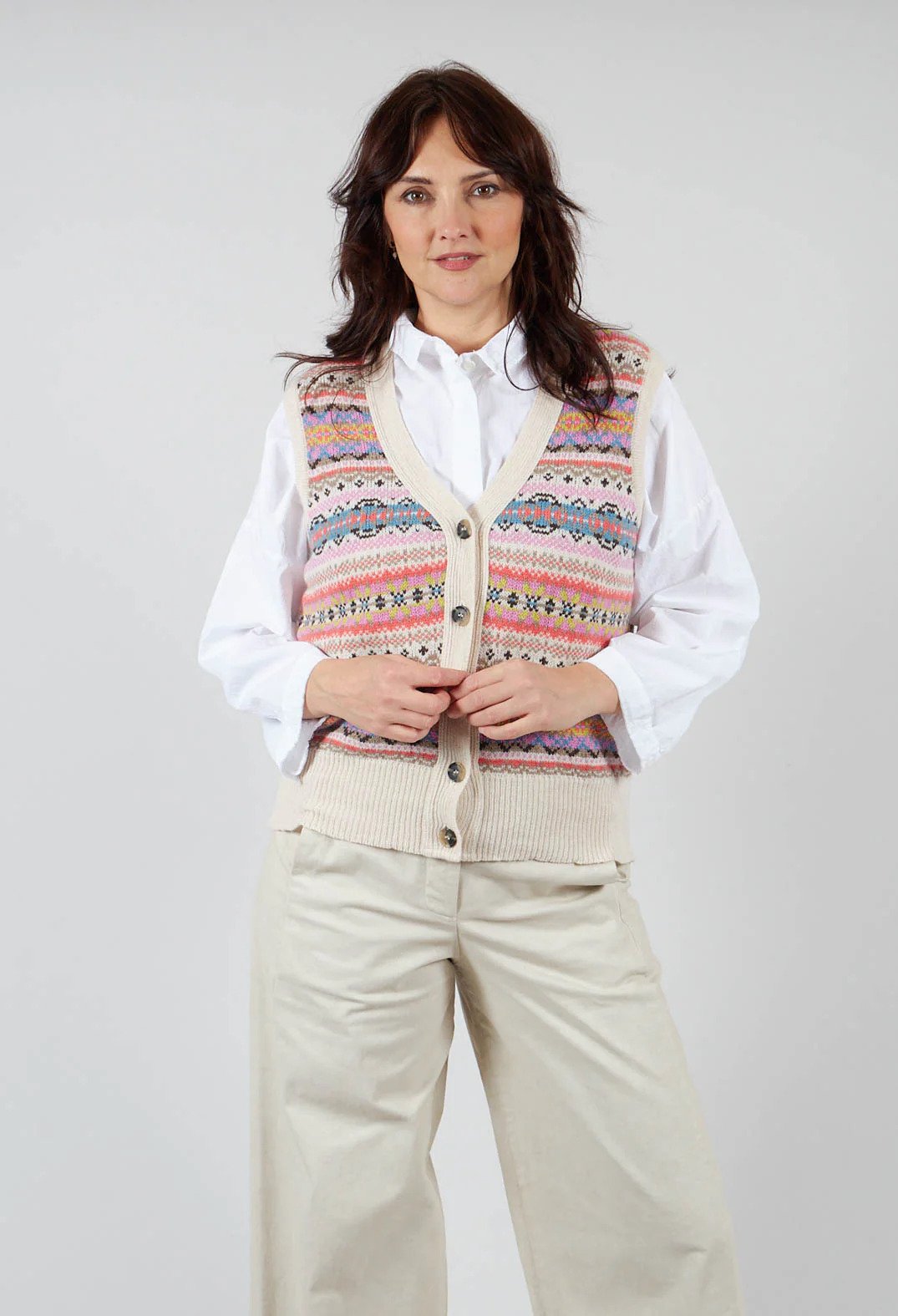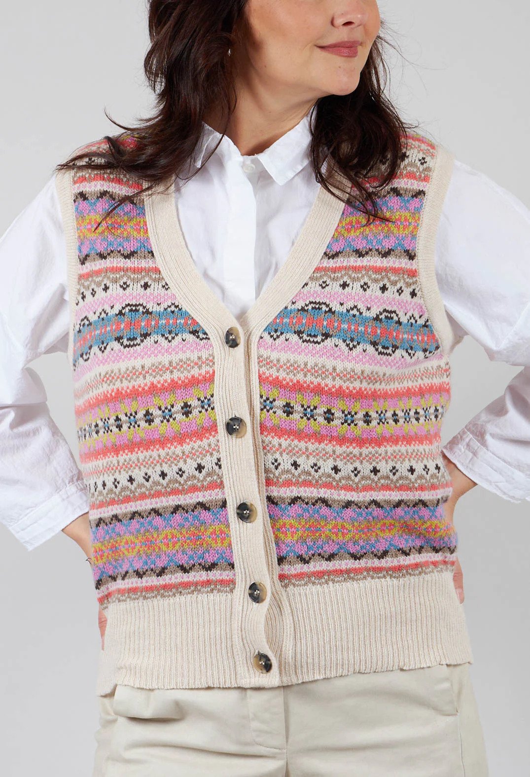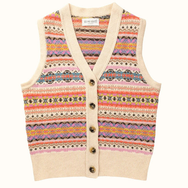 ERIBÉ Women’s Kinross Fair Isle Waistcoat – Coral
