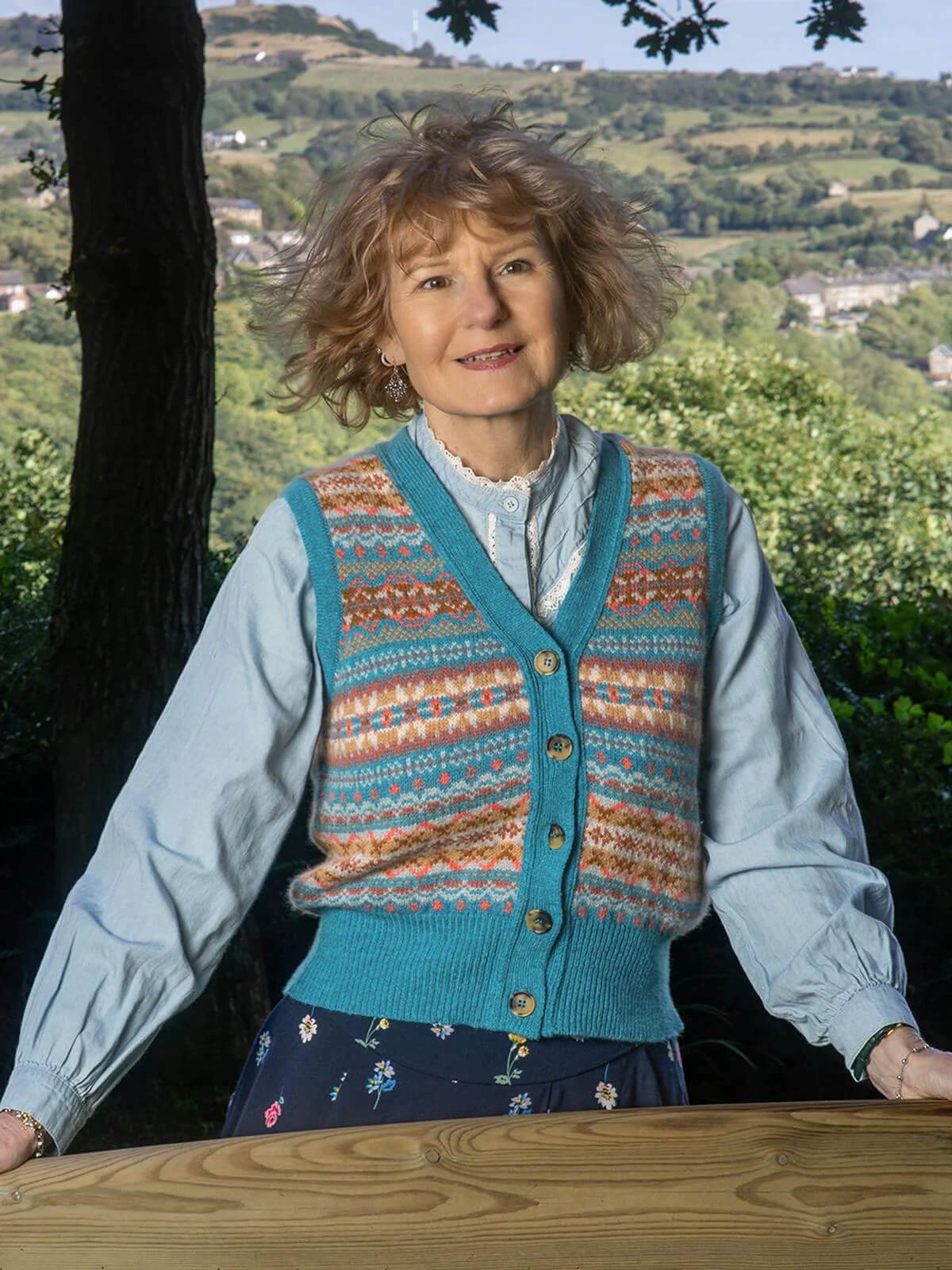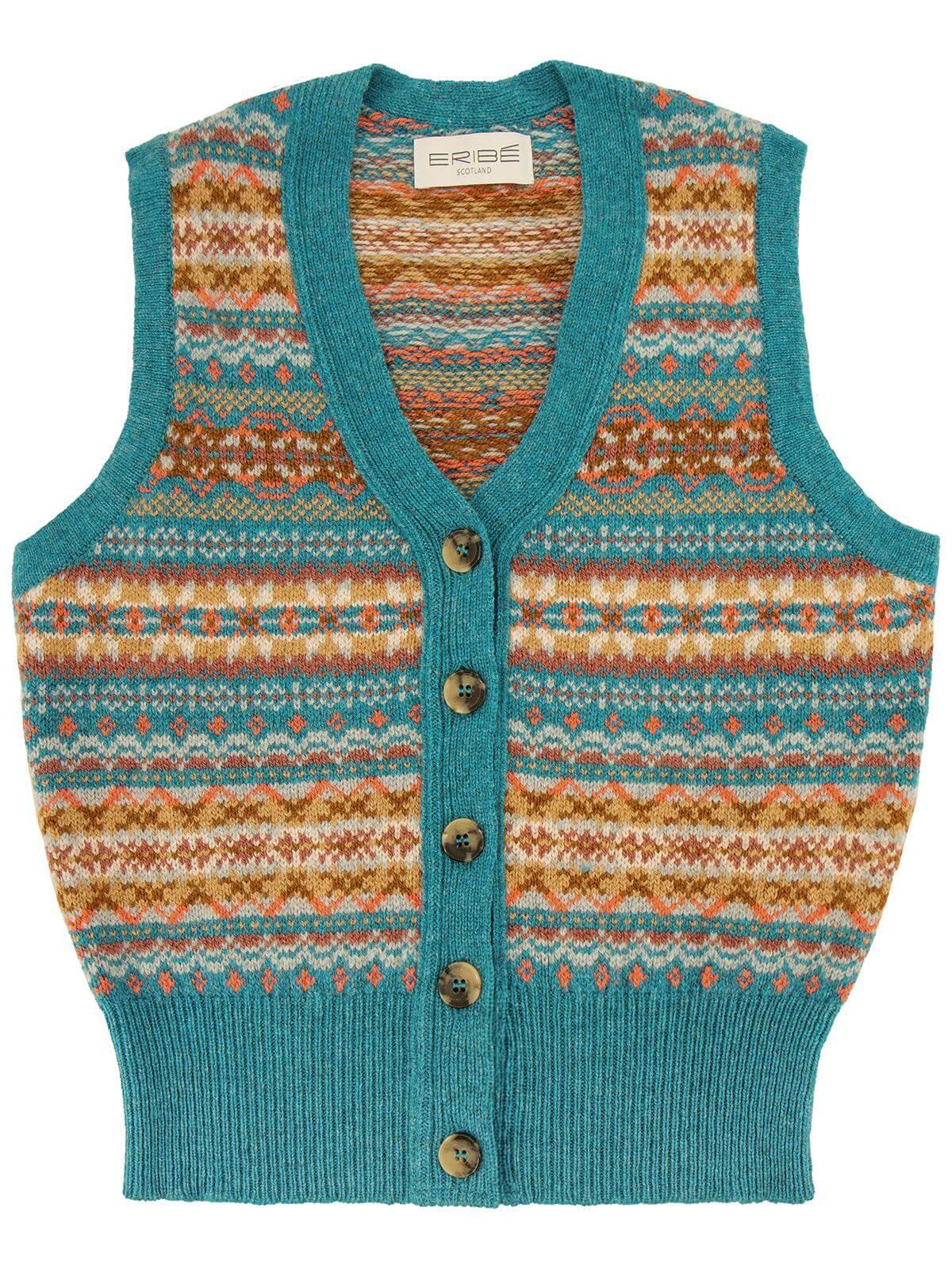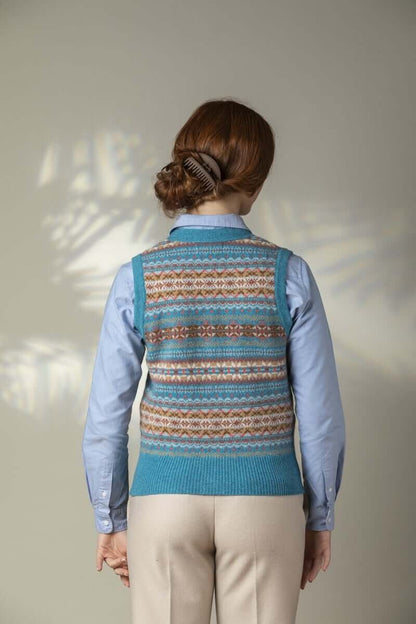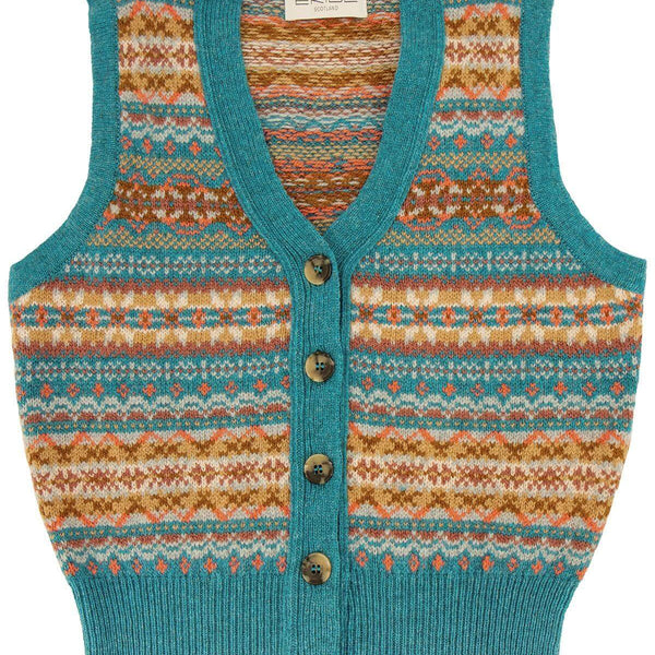 ERIBÉ Women’s Kinross Fair Isle Waistcoat – Topaz