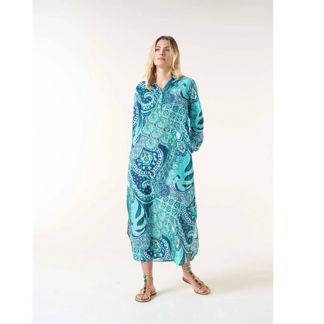 Say hello to effortless elegance with the Brazil Blue Dress by One Season. Crafted from 100% soft viscose, this breezy midi offers a slightly loose, straight-cut silhouette that flatters without clinging. Its mesmerising blue and green paisley-inspired print brings a vibrant, sun-kissed energy to your wardrobe—perfect for beach holidays, city strolls or alfresco lunches.