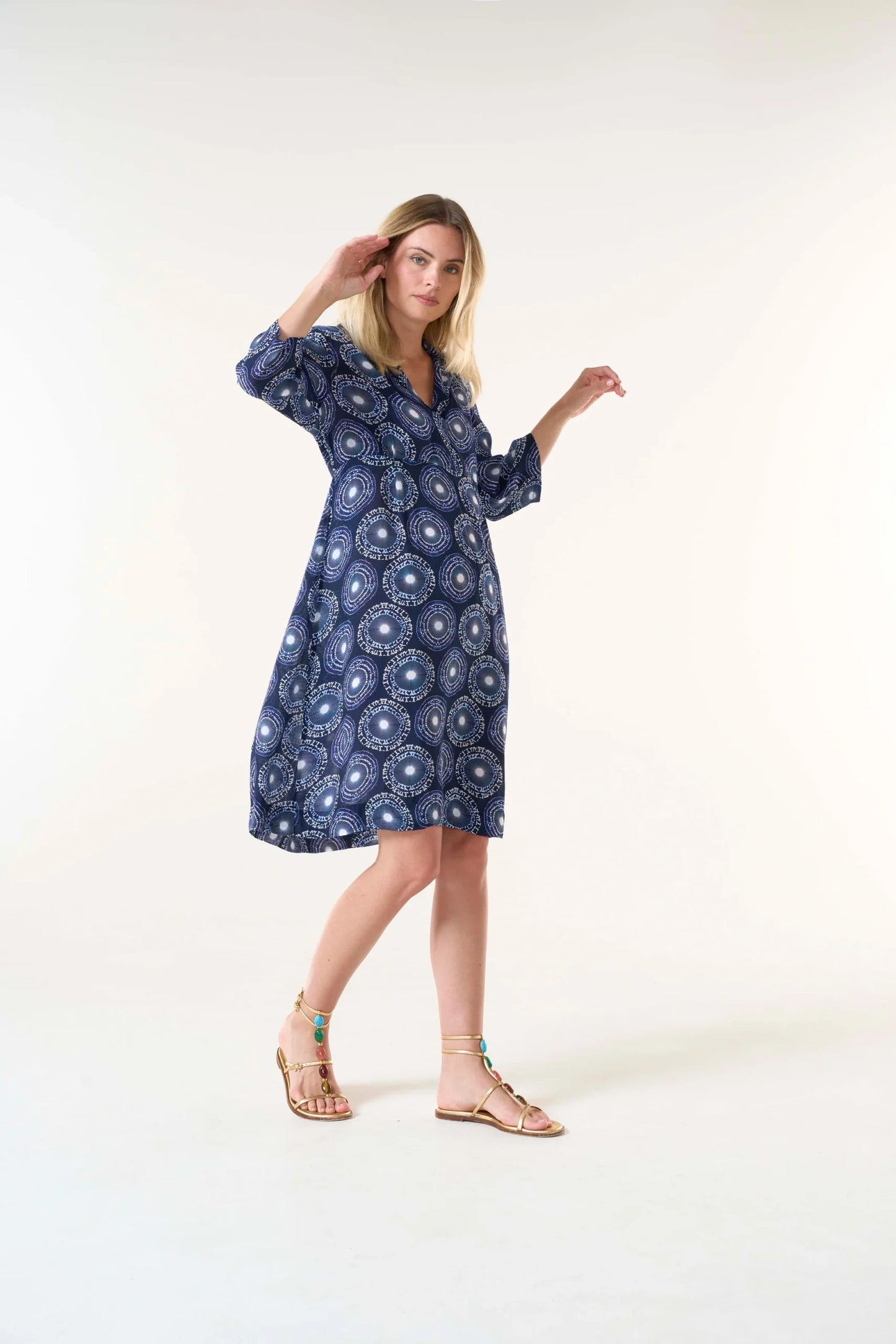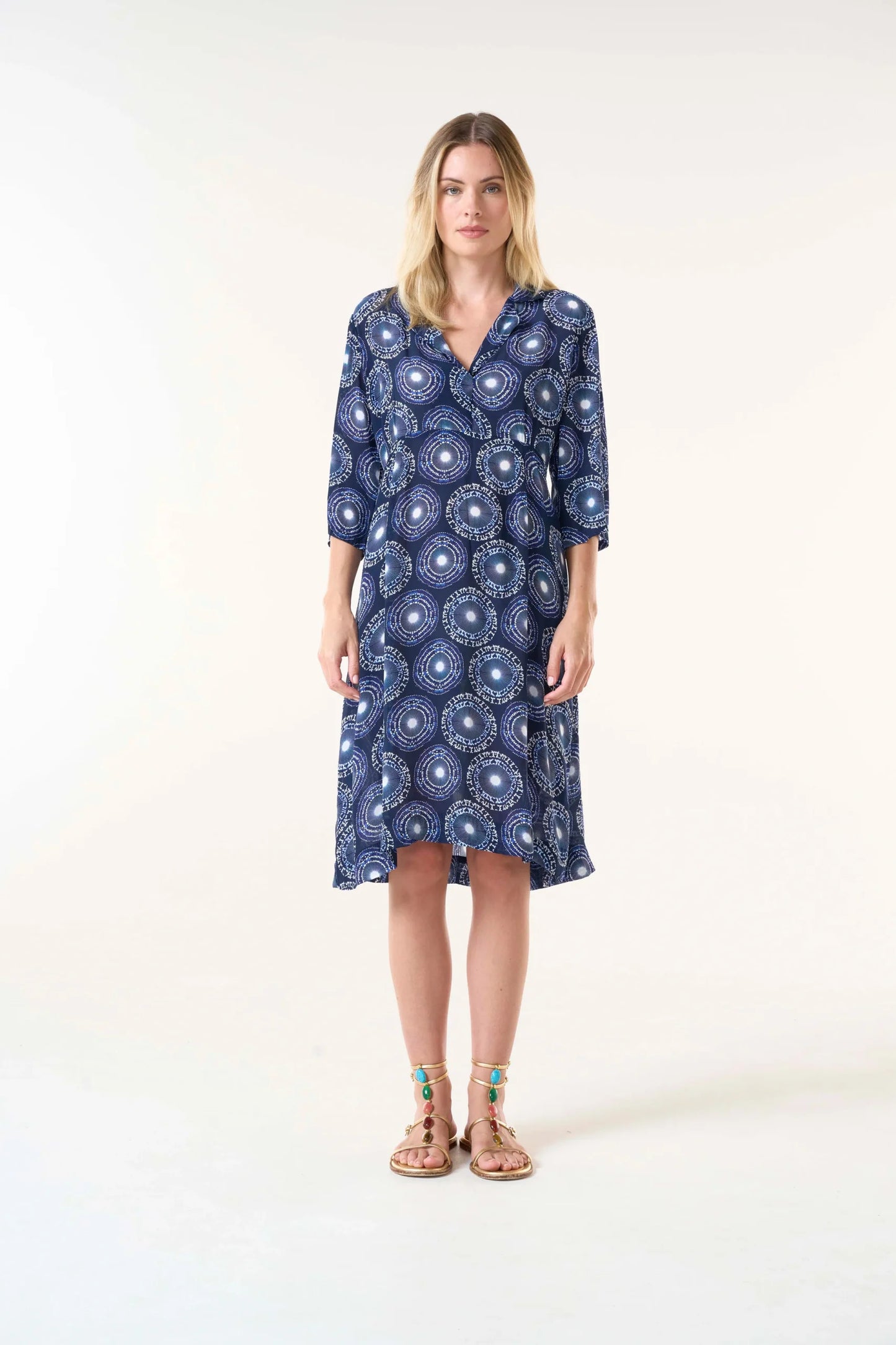 The soft open neckline and gentle ¾ sleeves lend it a timeless appeal, while the slip-on style ensures comfort and ease throughout the day. Dress it up with sandals or down with flats—this versatile piece transitions seamlessly from day to night.