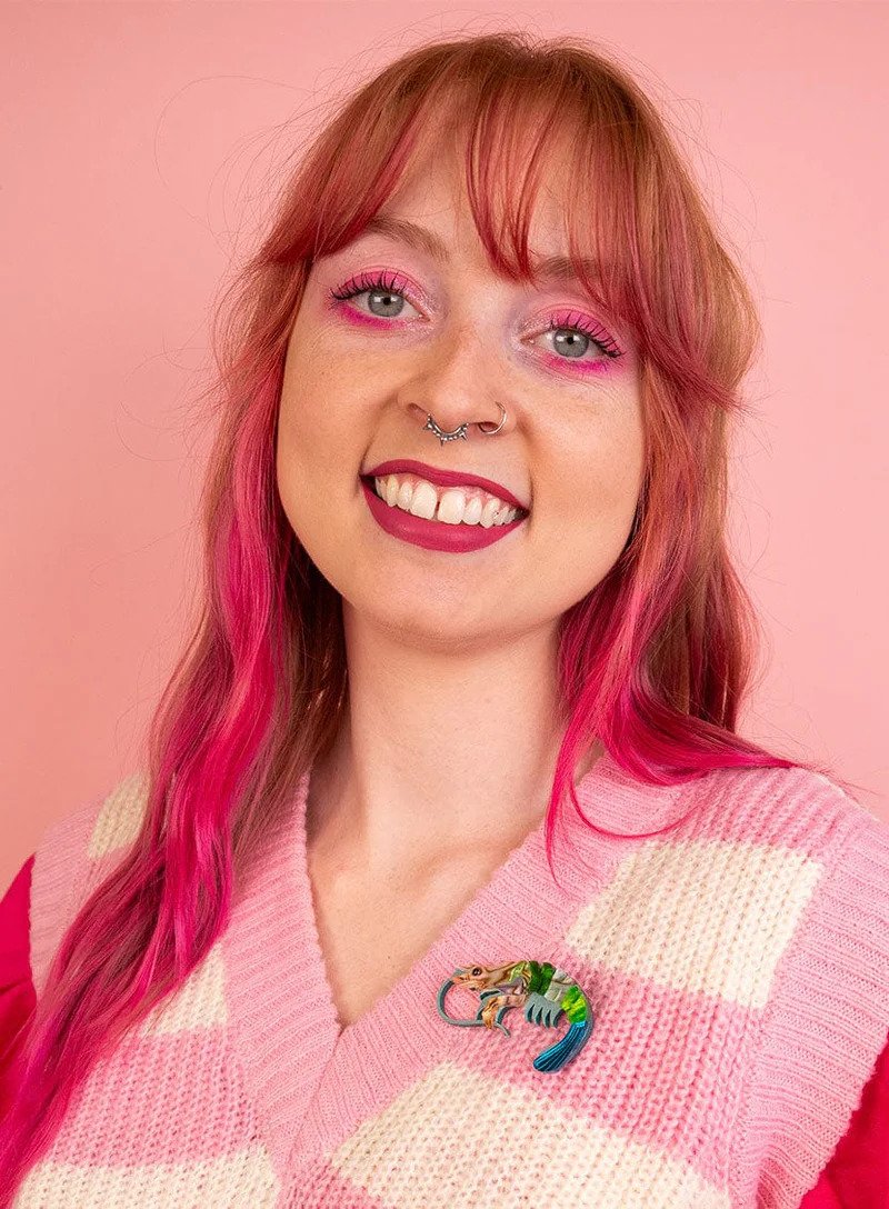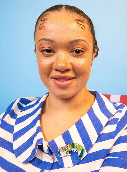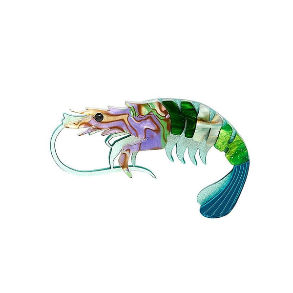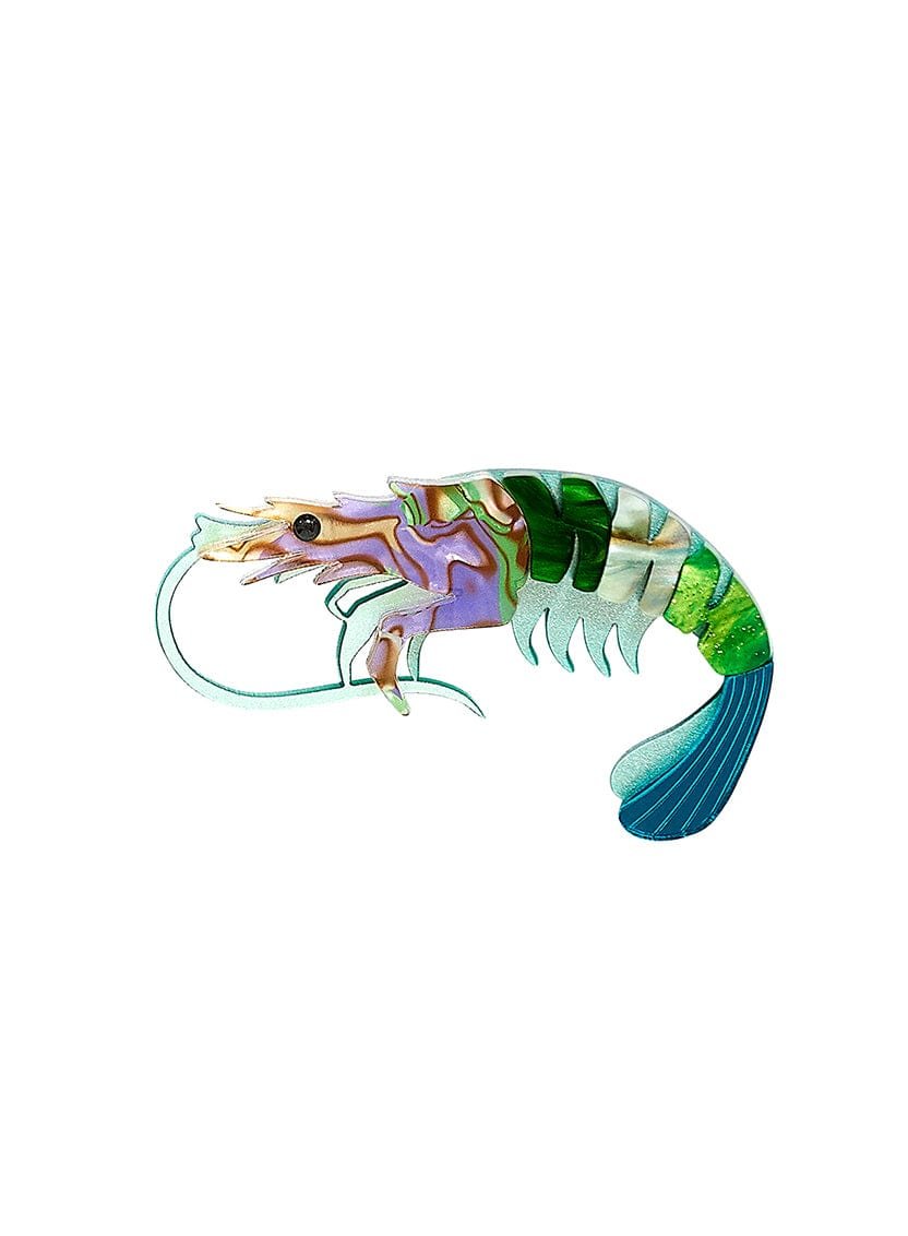 Pearly Prawn Brooch - Green by Tatty Devine | Laser Cut Marbled Acrylic