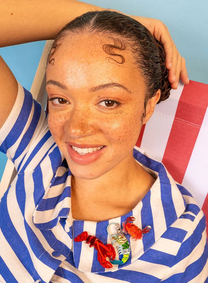 One for a night on the cocktails, it’s the Pearly Prawn Brooch - Green by Tatty Devine. Laser cut in a myriad of marine green marbled acrylic, this crustacean is hand layered over shimmering aqua to accentuate its delicate antennas and beady black cabochon eye. Set against a brooch back, liven up your lapel or LBD and serve sea-rious cool in this pint-sized party piece. Go on, be shellfish and treat yourself!