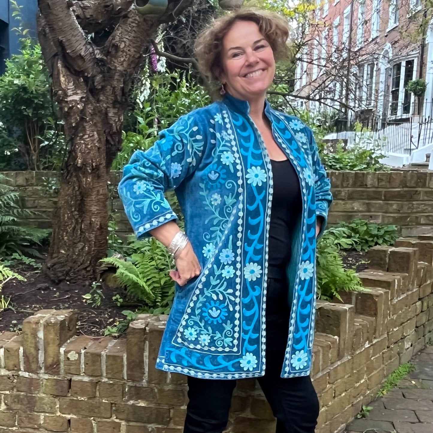 To keep your Rajastani Sky Blossom Jacket looking its best, we recommend dry cleaning or gentle hand washing in cold water. Avoid direct sunlight when drying to maintain the fabric’s vibrancy and quality.