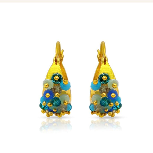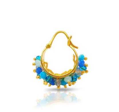 Unique Blue Bejewelled Hoop Earrings | Gold Vermeil Sterling Silver Jewellery