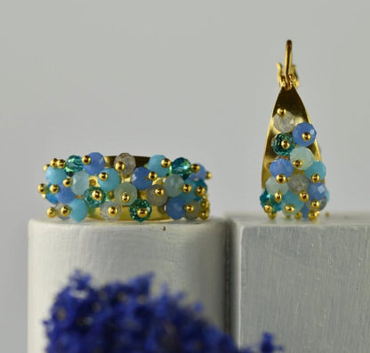 Gemstones: Blue and aqua chalcedony, labradorite, and hydra blue topaz.