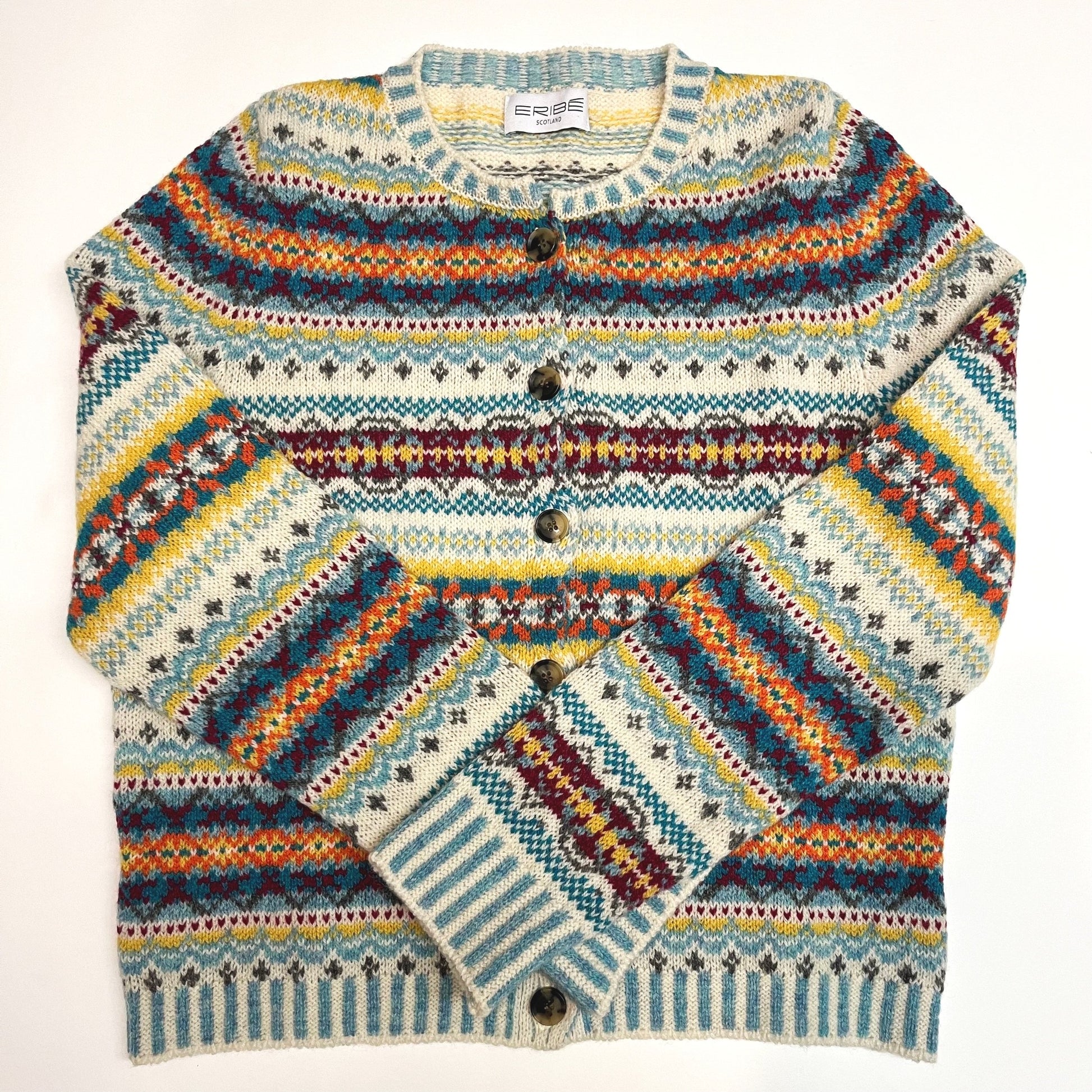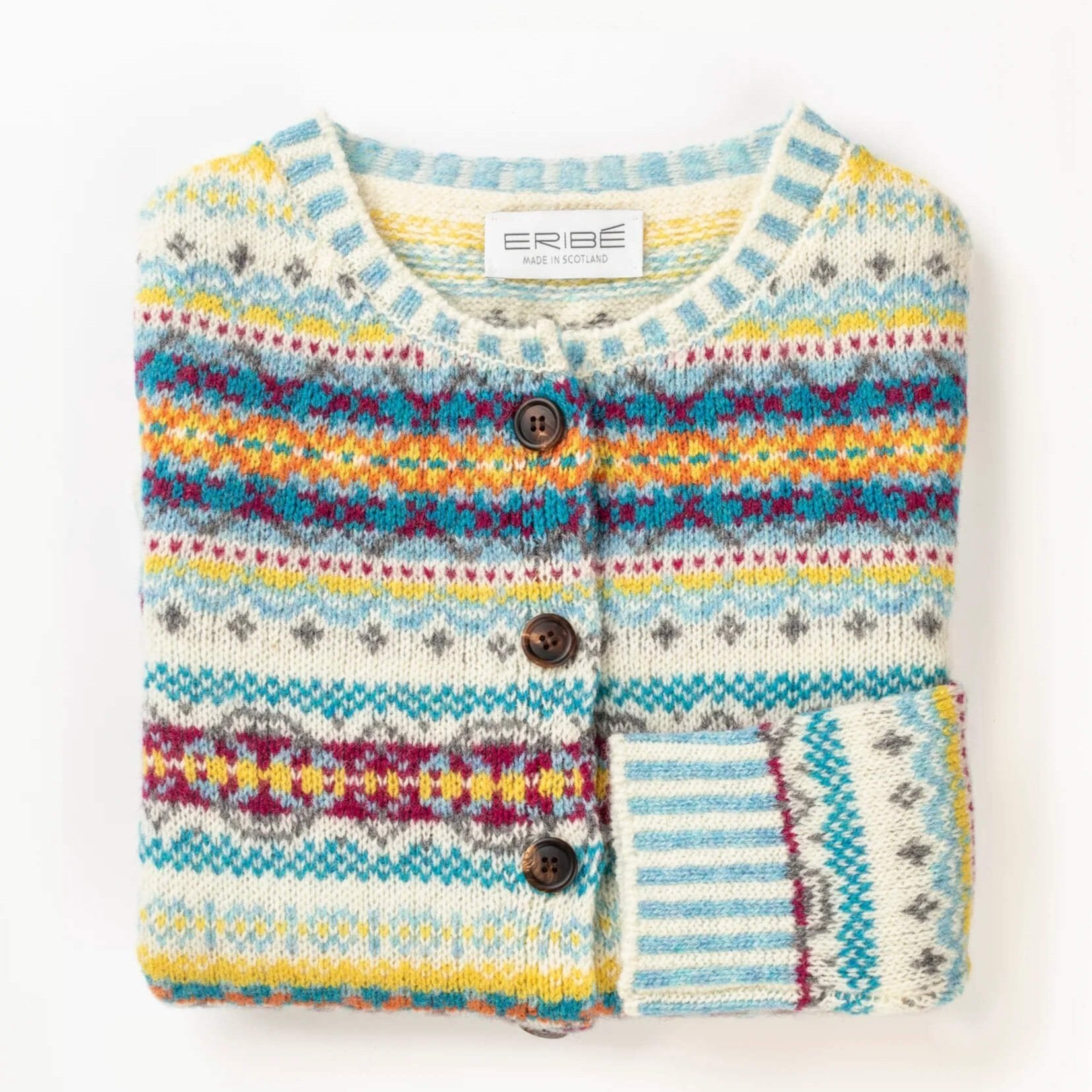 Hand-finished with shell buttons and ribbed cuffs, this cardigan exemplifies ERIBÉ’s dedication to fine craftsmanship. The cheerful and dynamic colour palette makes it ideal for bringing warmth and character to your wardrobe. Ethically produced using sustainable practices, the Westray cardigan is a must-have for knitwear enthusiasts.